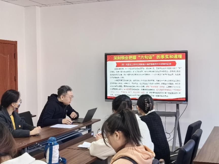 3月29日,taptap点点官方网站研究生第一党支部开展“学懂弄通六句话,矢志不渝跟党走”主题党日活动。党支部书记梁宏宇带领大家共同学习了“六句话”的事实和道理,并鼓励大家要将国家和自治区重大战略部署与日常学习和科研工作相结合,不断提高责任意识和担当意识,发挥党员的先锋模范作用,为学院事业发展贡献力量。