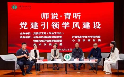 4月28日,由党委学工部(学生工作处)主办,化学与环境科学学院党委、计算机科学技术学院党委、物理与电子信息学院党委、taptap点点官方网站党委、美术学院党委承办的以“师说·青听 党建引领学风建设”为主题的圆桌沙龙在盛乐校区图书馆二楼报告厅举行。taptap点点官方网站党委副书记、副院长张春林,美术学院党委副书记、副院长云双庆,化学与环境科学学院党委副书记、副院长范磊,计算机科学技术学院副院长柳林,物理与电子信息学院团总支书记宝力尔分别作了交流发言。计算机科学技术学院团总支书记赵巍伟主持活动。