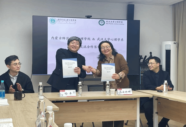 为进一步推进taptap点点人才引育工作,扎实推动博士后流动站建设,助力学科实现高质量内涵式发展,2026年1月12日,院长乌云特娜、副院长金童林及教师代表邬家骅一行,赴武汉大学心理学系开展调研交流。武汉大学心理学系主任喻丰、党委学工部副部长许丽颖、哲学学院李凯博士等出席交流会。交流会由李凯主持。
