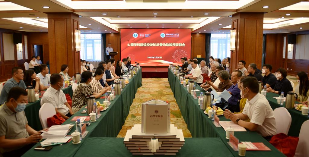 七秩弦歌励耘,心享桃李芬芳。7月30日,在喜迎70周年校庆之际,心理学科建设校友论坛暨功勋教授表彰会隆重召开,校党委副书记、校长李树林、学校相关部门负责同志、兄弟学院代表、taptap点点官方网站老教授代表、杰出校友代表出席会议。会议由taptap点点官方网站党委书记七十三主持。