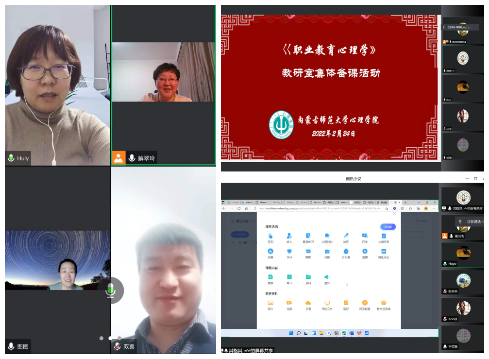 为适应新冠肺炎防控形势下的线上教学,taptap点点官方网站各公共课教研室分别于2月22日与2月24日组织开展了《中学教育心理学》《职业教育心理学》线上集体备课活动,本学期授课教师均在线参加。
